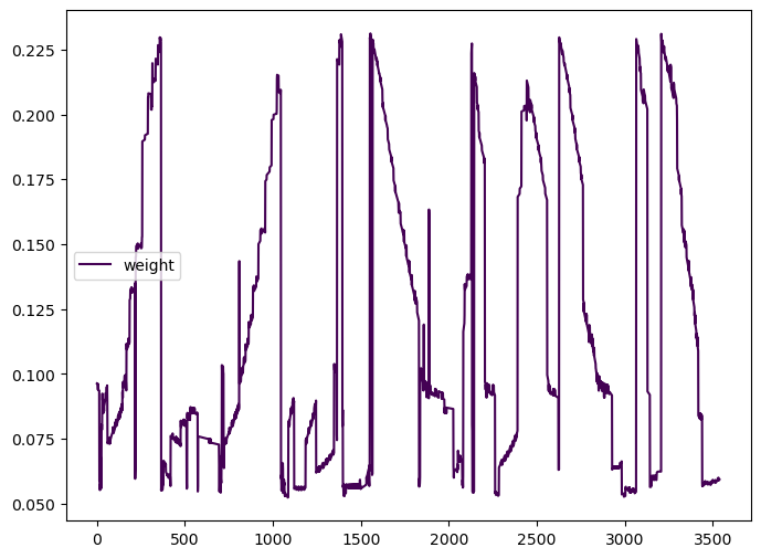 processed_partition['weight'].plot( cmap='viridis', figsize=(8,6), legend=True)