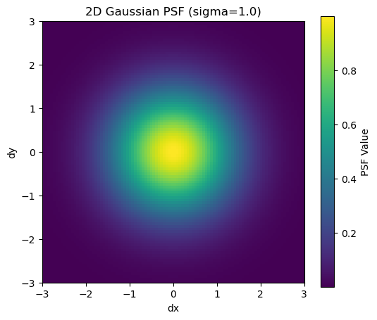 import matplotlib.pyplot as pltVisualization : Gaussian PSF - WIP!